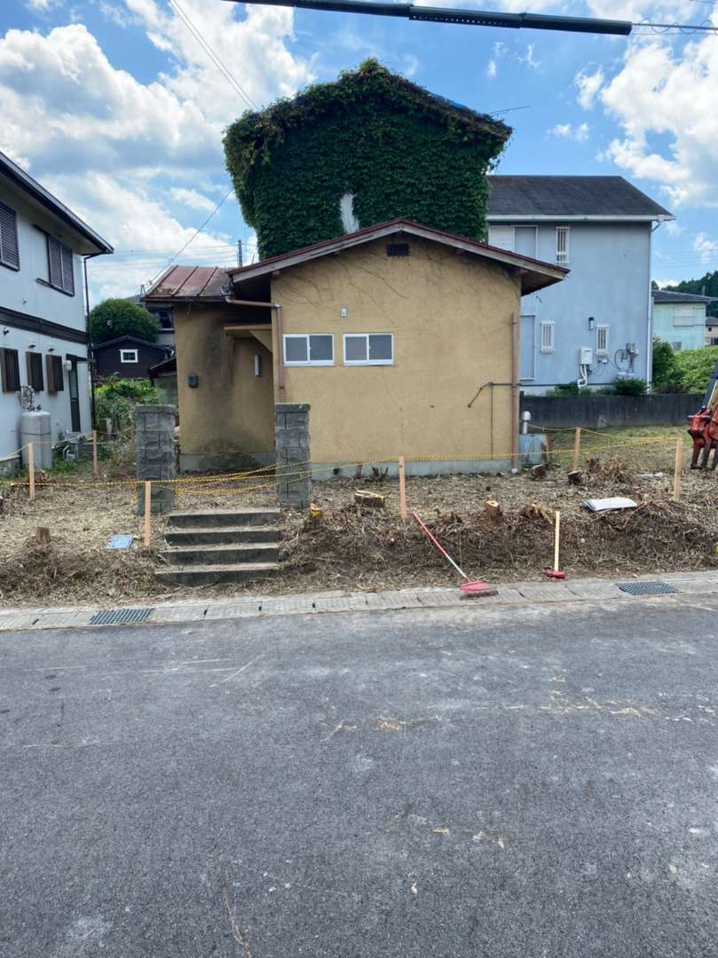 空家周りに杭をさし、ロープを張り、こちらで完工になります。